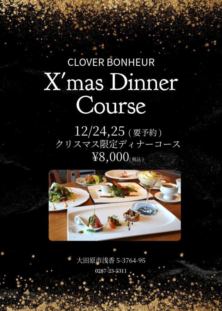 News 25.12.16 お知らせ Xmas 24.25 スペシャルディナーコースのご案内。 12月24日、25日の2日間、18:00~はXmasスペシャルディナーコースのご予約を承ります。特別な夜をぜひクローバーボヌールにて….ご予約はお電話にてお待ちしておりす。よろしくお願いいたします。 お知らせ一覧へ