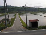 水田に水が入り稲の一生が始まる、右:ここが馬頭町大山田への入り口!左折すべし!!
