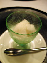 グラニテと同じように凍らせた果汁をナイフで削りそれを冷凍庫で固めて