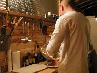 8時半 宇都宮パルコ裏のマルコバーへ この中華料理屋さんの上です。![]() 軒下にちいさいカンバンが出てます。 階段の入り口はこんなカンジです ![]() 扉の下のほうに薔薇が・・・もうなんとなくわかりますね良さそうなのが!右:扉をくりぬいたマルコバーの5文字。 ![]() 店内はこんなカンジです、小さなお店で席数はあまりありませんが、 それがプロの“見識”です、一体感がありとても居心地の良い素晴らしい空気が流れています、 普遍性を持つオトナのバランス感覚というか人間が出来てます、 すべてが程よく、やりすぎてない、足りないようで足りないものはひとつもない・・・ 見栄を張ったり、ハッタリがないお店です、夜のサテンとありますがまさにユル〜ク自由な気分になれる、 そんなカンジです、 ココロのままにふらっと寄りたい、またなんとなく寄ってしまう!そんなお店です。 一日の終わりを、また夜のハジマリの時間をここでゆっくり過ごすとシアワセがさらに増えそうなそんな気がしました。 日常的にふらっと遊びに行きたいところです。 マルコバー 〒320-0804 宇都宮市二荒町2-1菊和ビル2F 028-637-0539 *突然大勢でガヤガヤ行かないで、人数が多いときは電話してから、 少人数で足しげく通ったほうがより楽しめます。 ![]() 10時半ごろ 亀の甲坂の お食事処イザワ商店&CROSS CAFEへ ![]() ぜんぜんお店に見えない・・・ だってこうだもん・・・外観は1Fでお店でもやってるのかなぁ? とかろうじて思えるくらいアピールのない フツーの一戸建ての家です。 ![]() 入り口をくぐると・・・・昼間女性が営業しているというCAFEが振り返るとこんなカンジ。 ![]() 迷路みたいです、 なぜだかワクワク〜 なんだかな〜楽しいな〜 でもココじゃなかったらどうしよう 普通の民家のなかを土足で歩くような罪悪感が少々・・・ なんだか不思議なつくり、 わざとむき出しのコンパネや計算された部分が共存し カナリ魅力的。 ![]() ほんとにここでいいのかなぁ?と不安になるが この木材の刻印を見てひと安心。 ![]() 途中これかな?と扉を開けると トイレ発見! トイレはヒトを映す!いいカンジのトイレ、コレは期待デキマス。 ![]() フツーの家をムリヤリ店舗にしたような空間に バルセロナチェアがさりげなく置いてあったりして ![]() ![]() 改装の仕事が友人を通じて 回ってくることが多いという彼の選んだカウンターの天板は 当然のごとく分厚い分厚い一枚板、無数の年輪を刻んだ触るだけで精霊の息吹を感じる。 ![]() なんだか時間がここだけ切り離されてゆっくりでも迅くも無く 違うペースで流れているよう。 ![]() 薄消しの海老名さん、サムライっぽいんです、身のこなしやしゃべり方が・・・ 生き方に一本キュイ〜ンと鋼鉄のような筋金が通ってます。 好感度大! この海老名さんがすべての部分の借主、 それをイザワさんや1Fの女性などに貸していると言うコトでした。 ![]() 趣味が旅行しかない!とか海老名さん・・・ しかしですなぁそれがサイコウの趣味ではありませんか?? ボストンだったかな?好きなピアニストのライブに行ってきたんだけど これがその人のCDです、 とかけてくれたナンバーはステキでした。 ![]() ご自分で焼いた器オセロの駒のよう・・・そして裏側にはCROSS(十字架)が刻印されてます。 ![]() ![]() まさに隠れ家、カンバン無いから知り合いとその紹介のヒトしか来ない! 秘密の会員制のクラブみたい。 ただ残念ながらご都合により3月を待たずにCLOSEかも知れないのです、 来て見てよかった〜 すっごい刺激を受けました、 いろんなハナシをしましたが 海老名さんの落ち着いた気持ちの良い語り口からは 森羅万象:万事に通じ博学であることが伝わってきます、 強い意思と信念をあくまでもやわらかな漆黒ビロードにつつみ 『そんな大したことしてない』とあくまでもタンタンとしているのでした。 栃木にこんな生き方ができるヒトがまだまだ隠れて?いるんだ! と思ったらスゴイ嬉しくなりました。 自分の中に自分にも見ることの出来ない何かがポトリと生れ落ちたのです、 それが何か? これから少しずつ明らかになるでしょう! コレだけはいえますワタシはこの瞬間200%ほどパワーアップしてしまいました。 コレほどの心の変化は、 かつてわずかながら研修生として 覗き見た石神 和人シェフ時代の銀座ベルフランス以来です。 (立ってるだけという約束を 反故にし勝手にチャンスと見ると手を出しまくり、怒られるどころか うちに来いとまで言っていただいた思い出多き場所) :::::::::::::::::::::::::::::::::::*:::::::::::::::*:::::::::::::::::::::::::::::::::::::*::::::::::::::: でもってお食事処イザワ商店はコチラ なんか迫力たっぷりの背中!貫禄あるなぁ!! ちょっと怖そうでしょ?? イザワさん、 でもね 振り向くと じ ゃ | ん ! ! ! 意外にも?(失礼!)かわいらしさも備えた好人物! 天はニ物を与えた?店(てん)のほうかな・・・・ しかも無邪気にやたら明るい そして照れ屋さん(*^_^*) ![]() 粉チーズを仕上げにパラパラ&取り分けてくれ